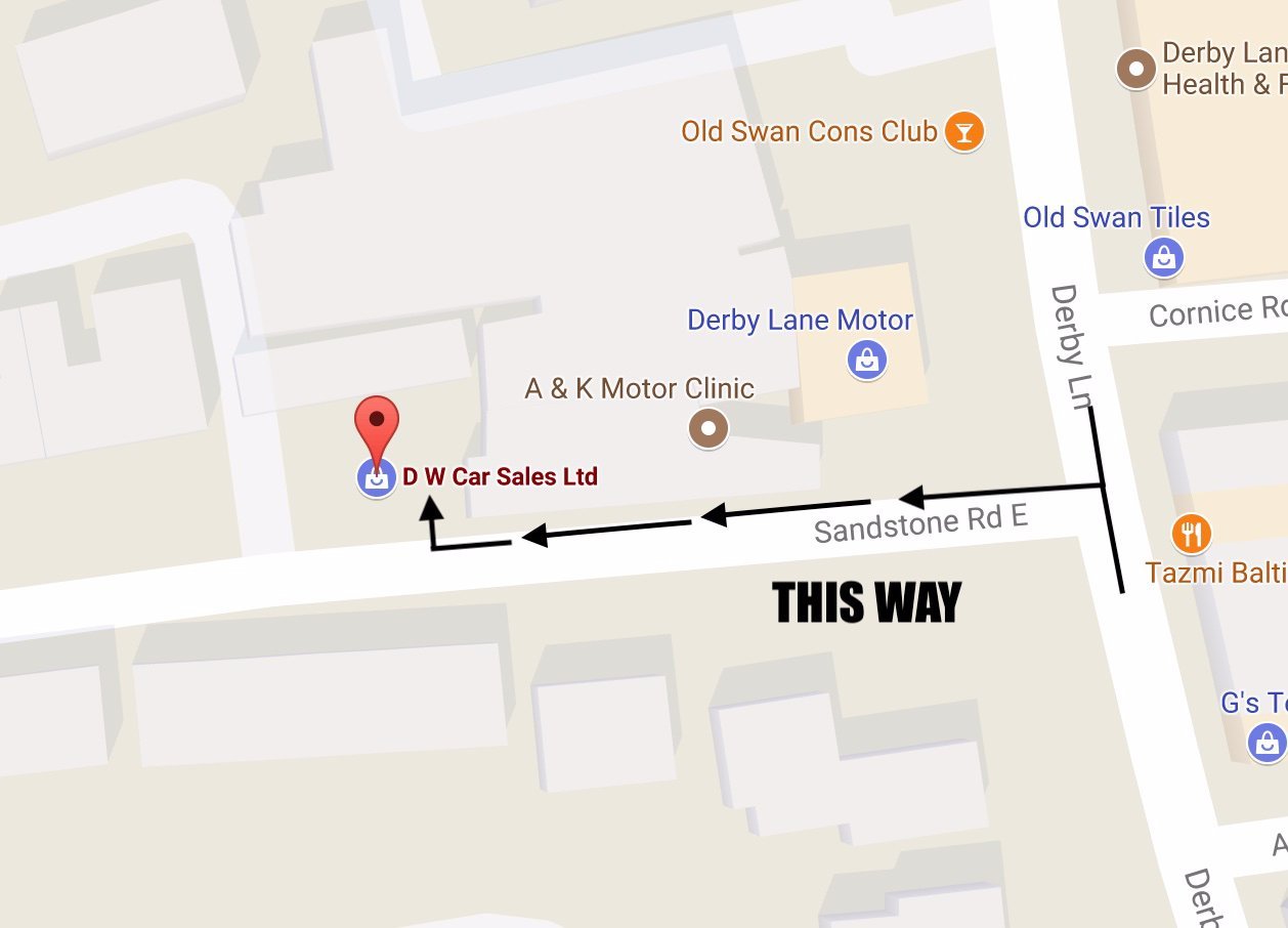 We are just located off Derby Lane, if you go 50 meters down SandStone Road East we will be on your right hand side, with our blue and white sign and yellow and black flag outside our entrance. Please use L13 6QZ post code and it will take you directly to us.