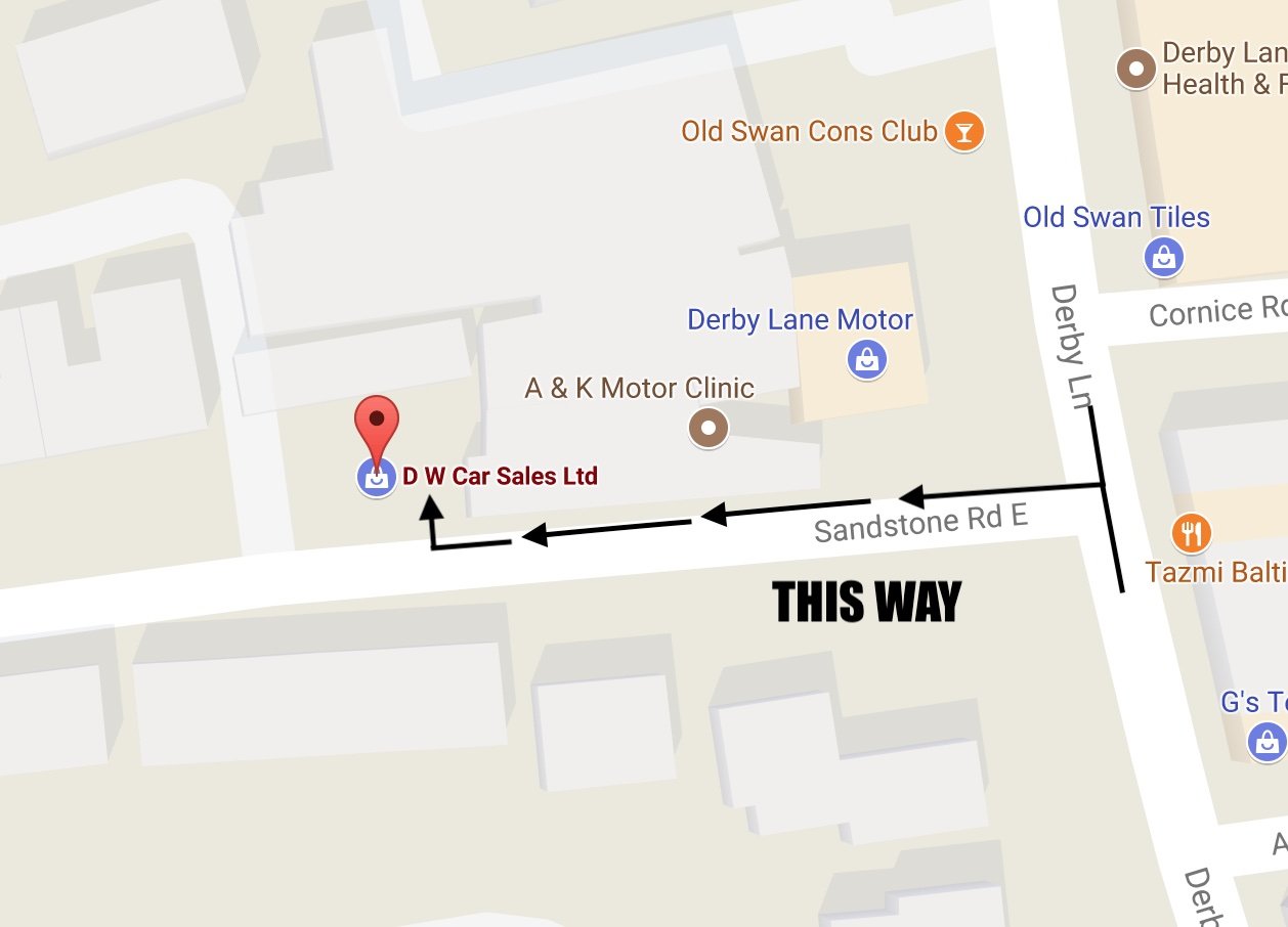 We are just located off Derby Lane, if you go 50 meters down SandStone Road East we will be on your right hand side, with our blue and white sign and red and white flag outside our entrance. Please use L13 6QZ post code and it will take you directly to us.
